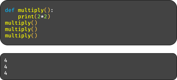 You have several options for what you can do, like “ Fight ”or “ Run .”If you choose to fight, you pick an attack to use, watch an animation play showing the damage dealt to the opponent, their health bar is depleted, and many more events are triggered. For the computer to follow all the instructions to make each of these events occur, there are tens or hundreds of lines of code that have to be processed. Imagine if these lines of code, along with all the code for each of the other functions like “Run ”, were all present in one section of the program. It would look long and messy and be tedious to troubleshoot if there are bugs.