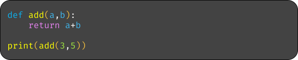 2. Define a function ‘add’ that takes two parameters ‘a’ and ‘b’ and returns their sum.