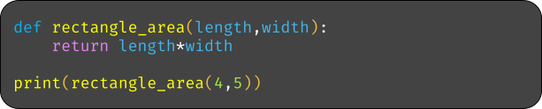 - Example: ‘rectangle_area(4,5)’ should return ‘20’