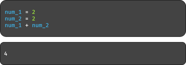 Let ’s say I wanted the computer to add two numbers together. I can store each number in its own variable, giving each its own name like num_1 and num_2 , and then add them.