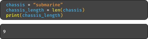 - Each part affects different aspects of your vehicle, like speed. We need to come up with a way to calculate speed using the parts chosen by a player. Let ’s say we calculate this by adding up the number of letters in each part name. But how can we get the computer to count letters? Use the ‘len ’method like below: